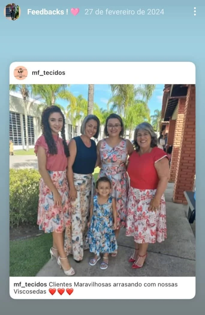 FRETE GRÁTIS acima de R$199 Novidades Linho Aquarela R$ 49,90Viscoseda Barrado R$ 39,90Viscoseda Barrado Caqui R$ 39,90Viscoseda Barrado Jardim 2 R$ 39,90Viscoseda Barrado Salmão R$ 39,90 Mais VendidosLinho Aquarela R$ 49,90Viscoseda Barrado Rosa R$ 39,90Viscoseda Barrado R$ 39,90Viscoseda Floral 4 R$ 39,90Veja a satisfação dos nossos clientes Nossa LojaSomos a MF nanda tecidosUma loja de atendimento 100% on-line, que envia para todo o Brasil.Os melhores tecidos da moda você encontra aqui.Conheça nosso catálogo e se apaixone pelos nossos tecidosQuer ver mais modelos?