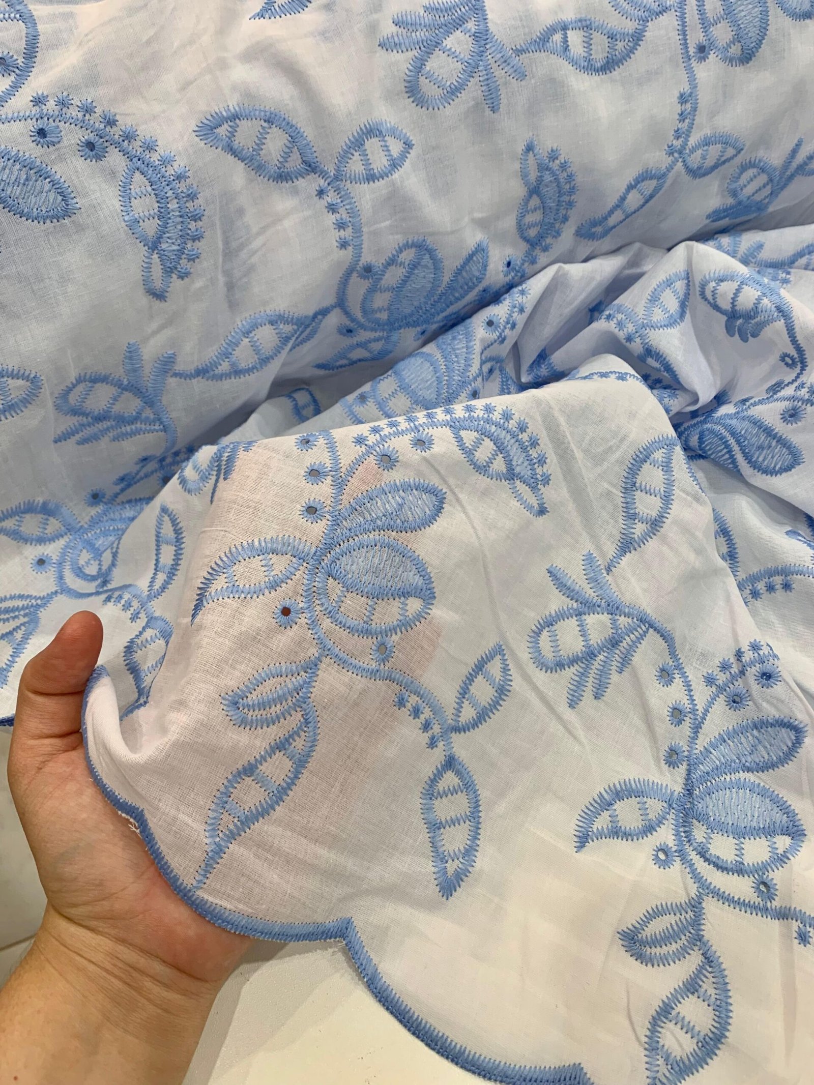 O tecido Lese 100% algodão é um material delicado e sofisticado, conhecido por seu acabamento artesanal. Ele é caracterizado por um trabalho de bordado vazado, onde as linhas do desenho são cuidadosamente cortadas e costuradas, criando um efeito de renda intricada e detalhada. O algodão puro confere ao tecido uma textura macia, natural e confortável, além de ser respirável e ideal para o clima quente. Esse tipo de tecido é frequentemente usado em peças de decoração, roupas finas e acessórios, agregando um toque clássico e elegante ao produto final.