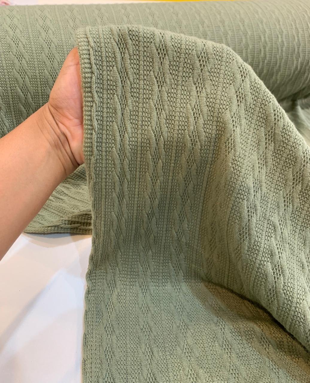 Produzida em teares modernos que reproduzem o entrelaçamento tradicional do tricô, ela entrega o charme do artesanal com a durabilidade da tecnologia industrial.