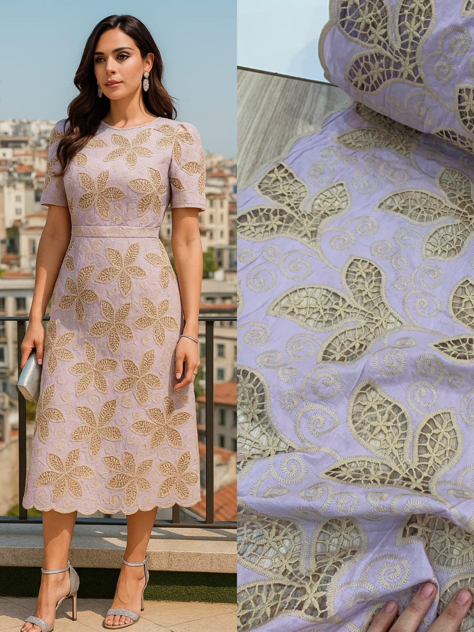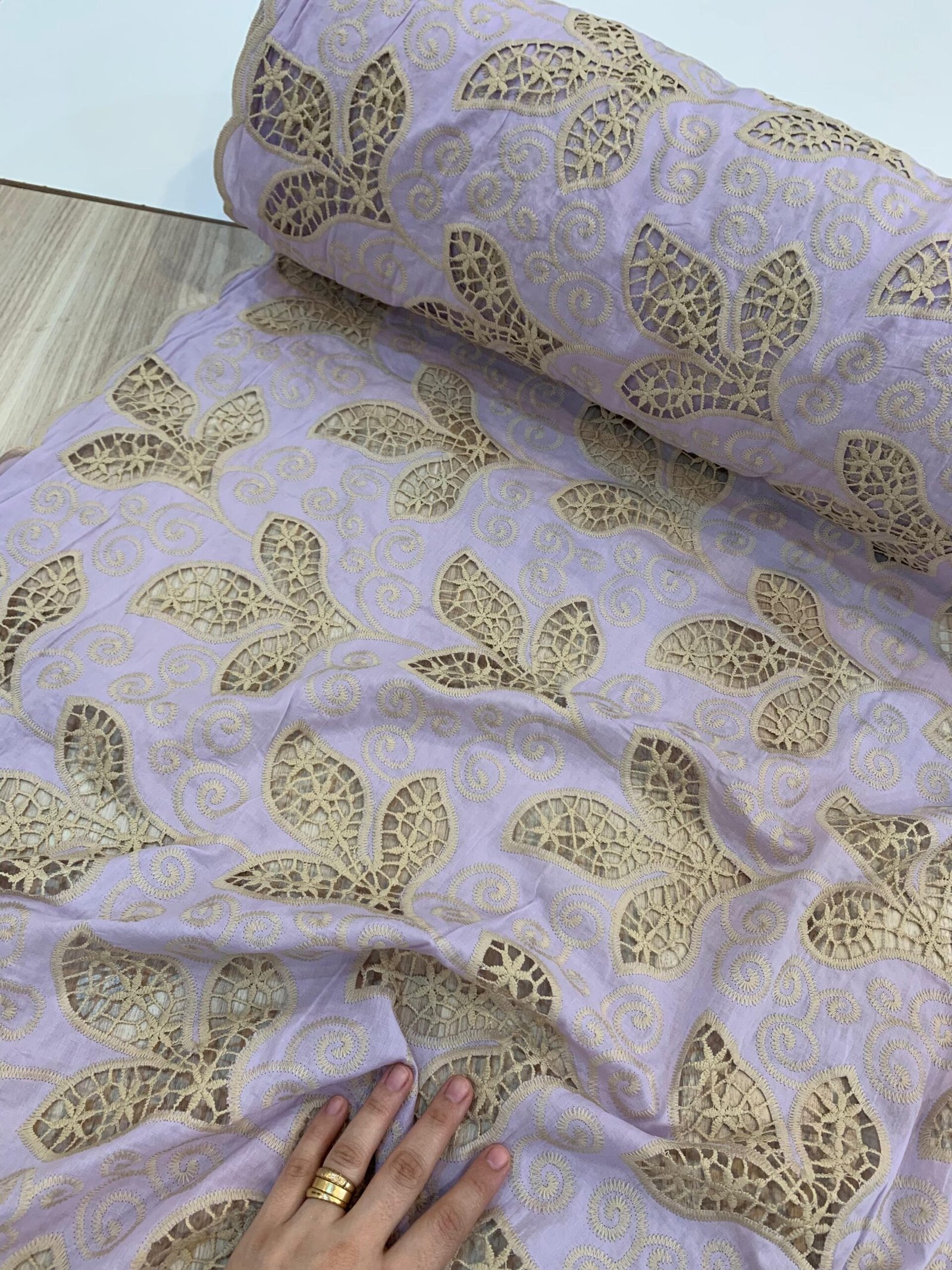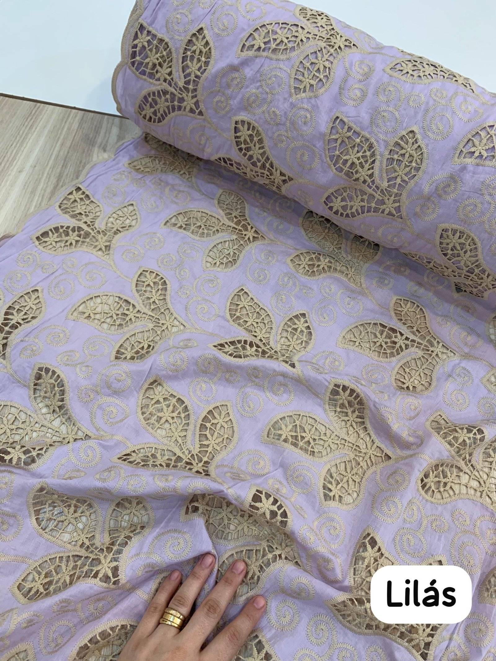 O tecido Lese rechelieu 100% algodão é um material delicado e sofisticado, conhecido por seu acabamento artesanal. Ele é caracterizado por um trabalho de bordado vazado, onde as linhas do desenho são cuidadosamente cortadas e costuradas, criando um efeito de renda intricada e detalhada. O algodão puro confere ao tecido uma textura macia, natural e confortável, além de ser respirável e ideal para o clima quente. Esse tipo de tecido é frequentemente usado em peças de decoração, roupas finas e acessórios, agregando um toque clássico e elegante ao produto final.