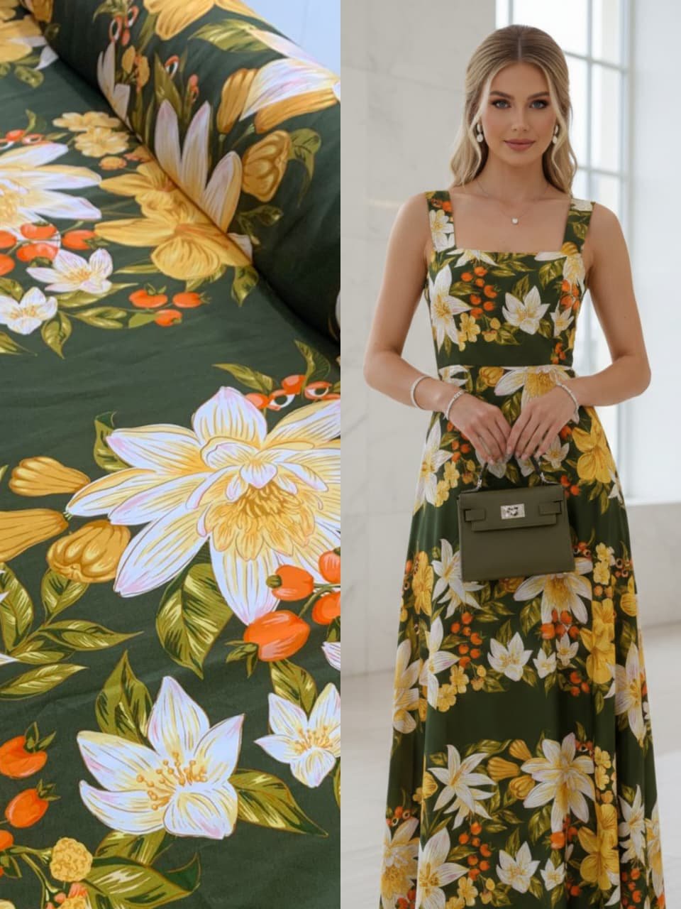 O tecido em 100% viscose é conhecido pelo seu toque extremamente macio e caimento fluido, proporcionando um visual elegante e confortável ao mesmo tempo. Produzido a partir de fibras naturais de origem vegetal, é uma excelente opção para quem busca leveza e respirabilidade.