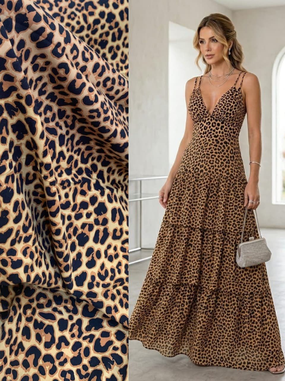O tecido em 100% viscose é conhecido pelo seu toque extremamente macio e caimento fluido, proporcionando um visual elegante e confortável ao mesmo tempo. Produzido a partir de fibras naturais de origem vegetal, é uma excelente opção para quem busca leveza e respirabilidade.