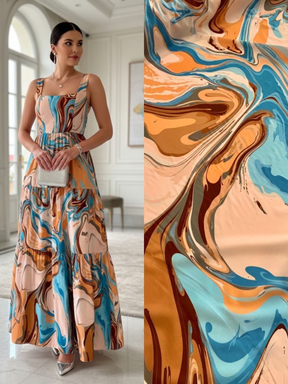 A viscoseda é um tecido bem leve e perfeito para o verão. Seu caimento e fluido com bastante movimento, excelente para peças femininas como vestidos, saias, blusas e camisas . Ideal para looks e composições casuais ou também utilizado na moda festa em vestidos esvoaçantes e delicados.