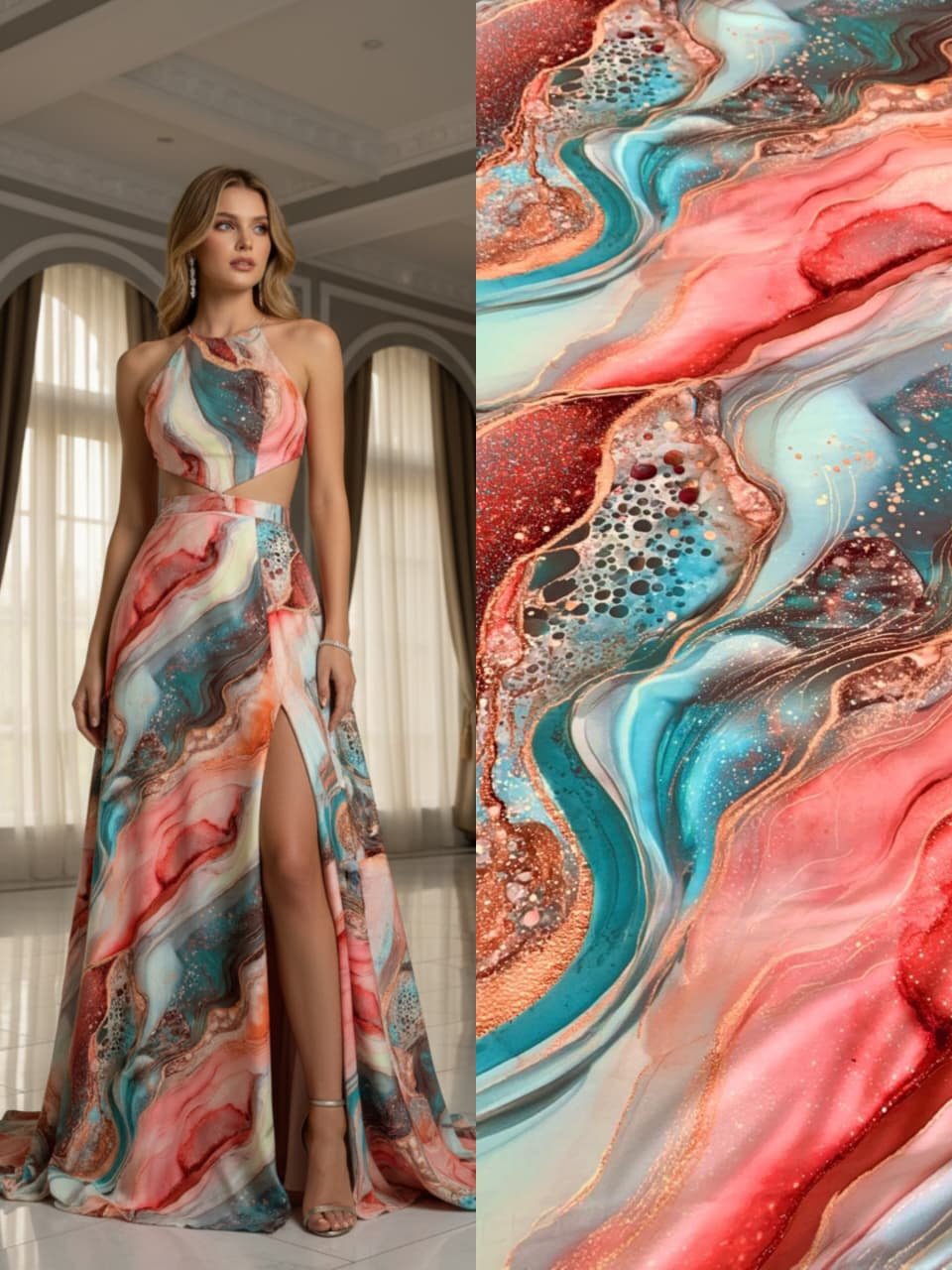 A viscoseda é um tecido bem leve e perfeito para o verão. Seu caimento e fluido com bastante movimento, excelente para peças femininas como vestidos, saias, blusas e camisas . Ideal para looks e composições casuais ou também utilizado na moda festa em vestidos esvoaçantes e delicados.